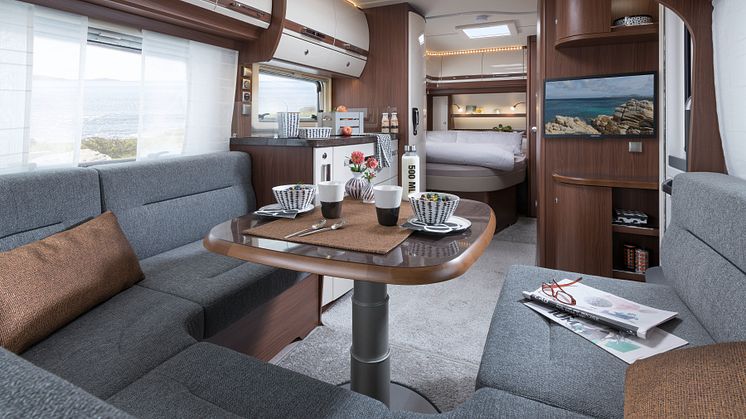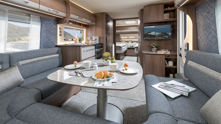 Saphir – er bietet Grundrisse für jede Lebenslage Die komplett überarbeitete Baureihe bietet mit 12 Grundrissen für jeden das Richtige, auch für die große Familie mit Platzbedarf. Das Saphir-Innenraumdesign im neuen Kastanie-Moretti-Möbeldekor in Verbindung mit den beiden neuen Stoffvarianten Cremona und Gilio setzen diese Baureihe bestens in Szene.