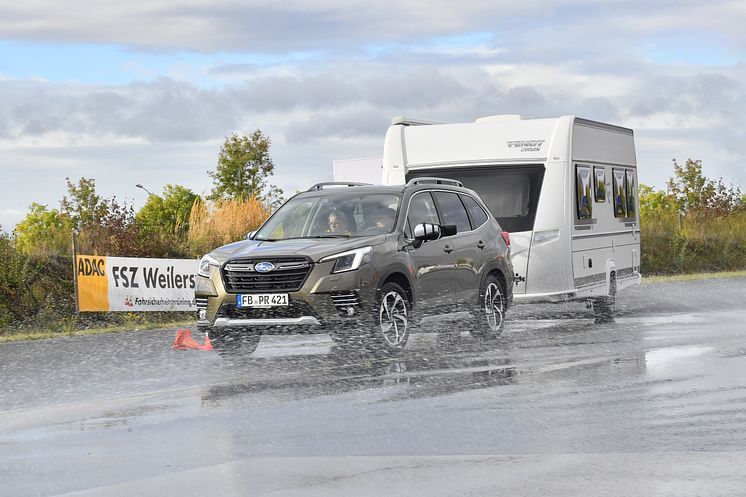Trainingsinhalte: An- und Abkoppeln, sicheres Handling auch in engen Passagen, Regeln der hohen Fahrstabilität, Notbremsung mit und ohne Caravan, Ausweichen vor Hindernissen und effektives Verhindern eines schlingenden Anhängers.