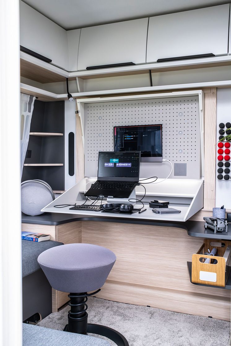Das Herzstück dieses neuen Caravans ist seine Vielseitigkeit. Thomas Kamm erklärt: "Der #connect bietet eine Grundausstattung, die auf den Bedürfnissen digitaler Nomaden, Influencer, Content Creator und Freiberufler zugeschnitten ist. Es ist ein mobiles Zuhause und ein flexibler Arbeitsplatz zugleich. Der Wohn- und Arbeitsbereich passt sich spielend den Tagesbedürfnissen an, ohne aufwendige Umbauten."
