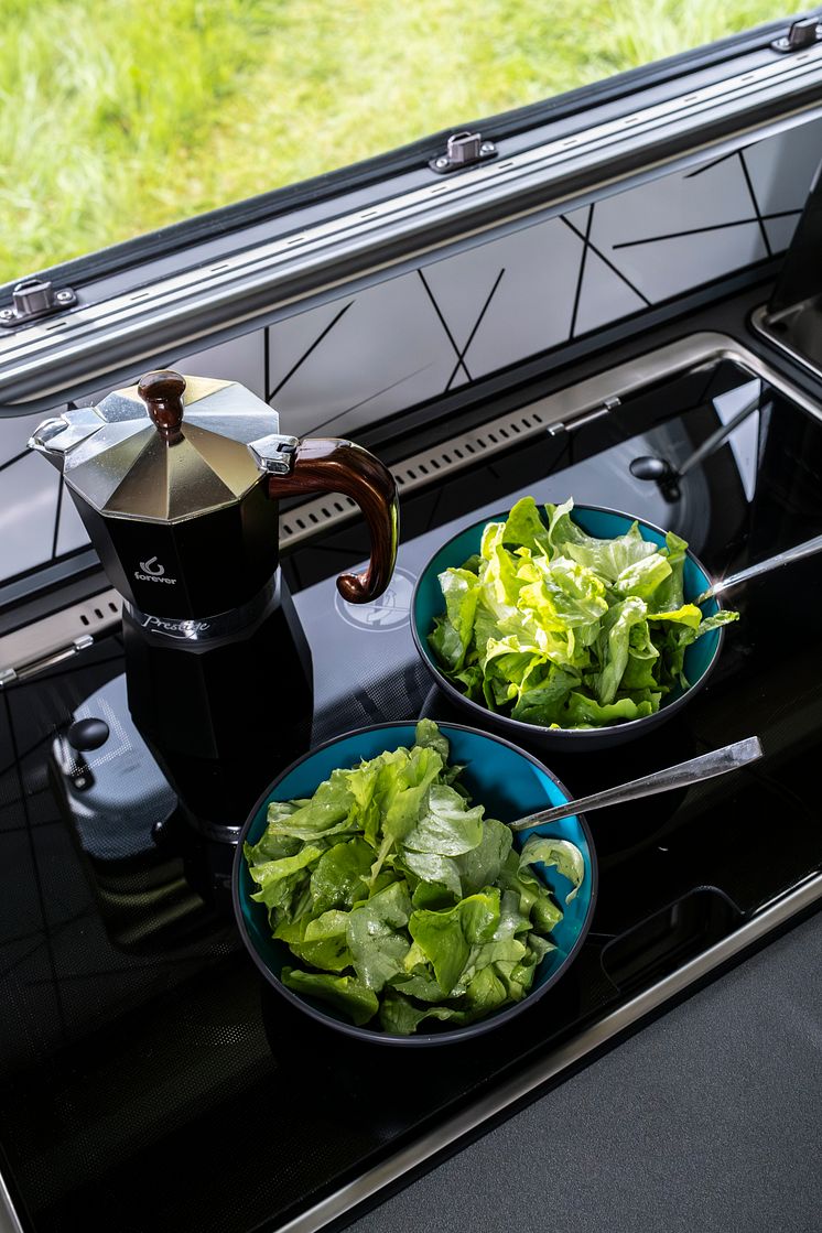 Der Apero #connect beeindruckt mit dem eingebauten Profischreibtisch „conference“ von Beaktor, ergonomischen Sitzen am Schreibtisch dank Aeris Swopper und optimale Internetverbindung mit dem stream&surf-net 2.0 Paket von Antretter&Huber. Die Lounge bietet Platz für entspanntes Streamen, während das clevere Stauraumsystem von Silwy-Magnetleisten für sicheren Halt von Geschirr und Gläsern während der Fahrt sorgt.