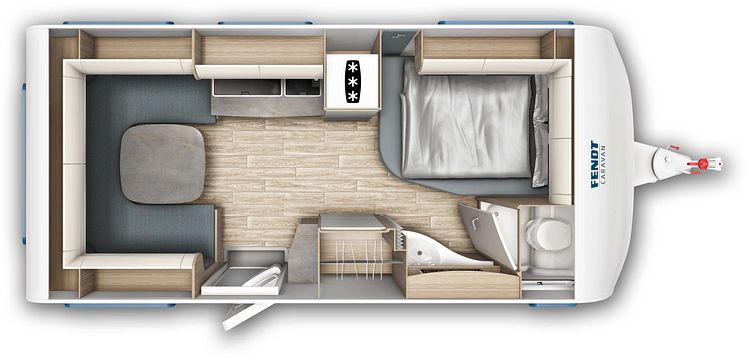 Das für die Saison 2025 neu konzipierte Möbelklappendekor in Kombination mit der Fendt-Caravan-typischen Linienführung des Außenbereichs macht diese Baureihe traditionell zum topmodernen Favoriten für alle Liebhaber von konzeptionell perfekten Lifestyle-Caravans mit dem gewissen Etwas.